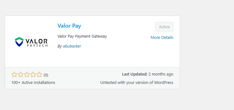 - Browse through the search results to find the Valor Pay you want to install. You can click on the More Details button to learn more about the plugin, including its features and compatibility.